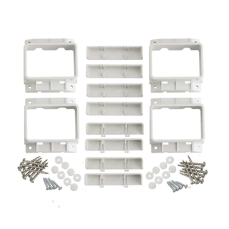The Tuscany Vinyl Rail Bracket Kit is compatible with Color Guard’s Tuscany Vinyl Rail System. This kit contains additional brackets for scenarios when a rail section is cut into two sections and extra brackets are needed to mount both sections to the posts. Brackets are already included in each Tuscany Rail Kit, but only enough for one section of railing. Brackets are fixed (not adjustable) and installation is easy.
