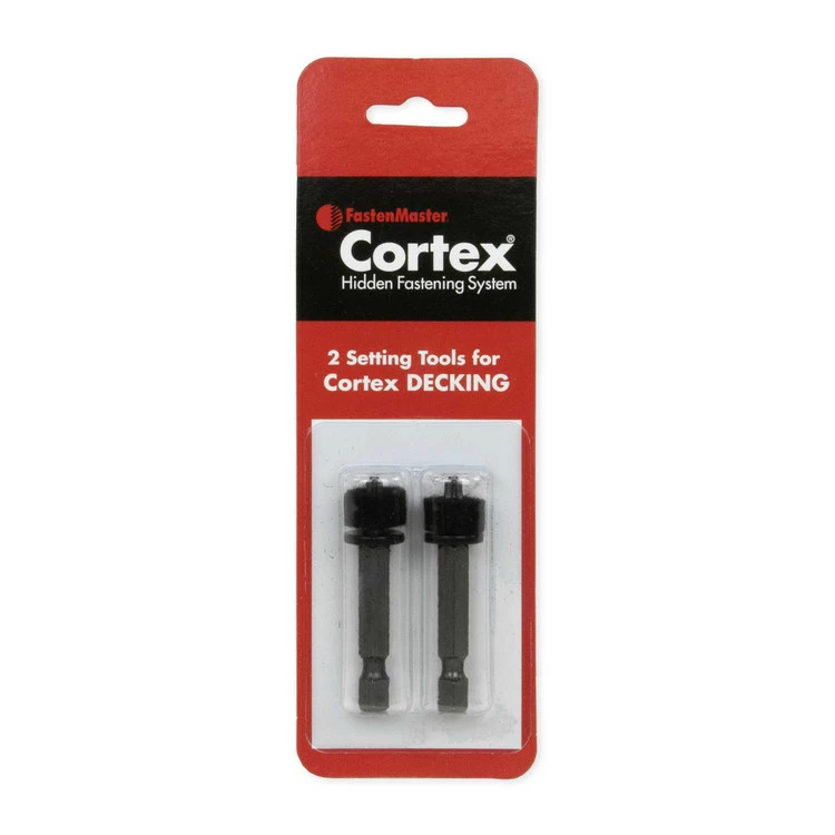 The TORX ttap Drive System is a six-point star-shaped pattern that is almost impossible to strip-out. In addition, the stability button keeps the fastener straight through the installation creating a strong bond between the deck board and joist. The new thread design reduces installation torque and increases the fasteners strength. The tool has been optimized for extreme pro contractor use. The stronger bit material and industrial grade felt enables you to install 350 fasteners on one Cortex Setting Tool.
