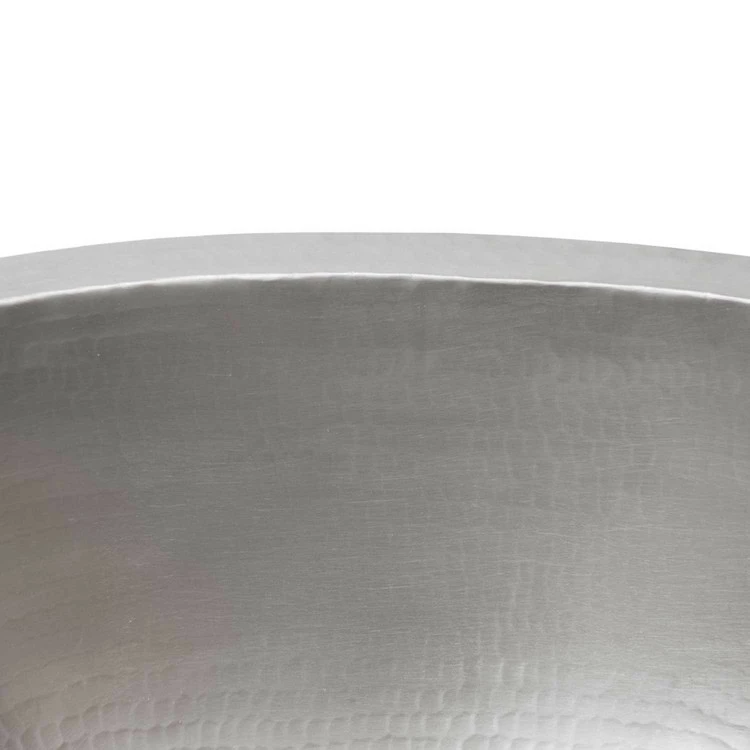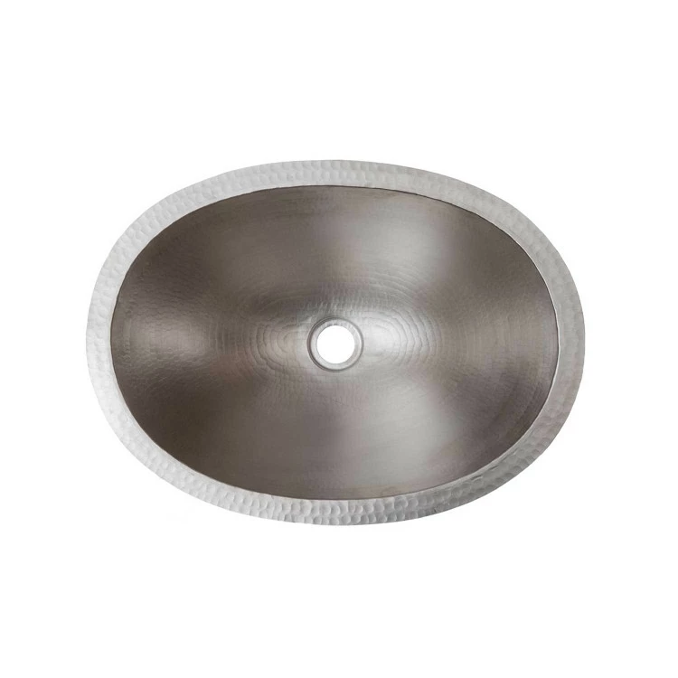 The 19″ Oval Under Counter Copper Bathroom Sink – Electroless Nickel has the handcrafted beauty of copper with the modern look of steel. This premier plated sink uses a highly specialized Electroless Nickel Plating (ENP) process that provides both visual and functional durability. Premier Copper Products uses only Lead Free Electroless Nickel Plating (ENP) on our products. ENP is generally used for engineering application due to its properties, including: high wear resistance, high hardness, and corrosion protection. The deposit thickness (plating thickness) can be controlled very accurately only with ENP. The Lead Free nickel can be deposited uniformly throughout the sink when applied with ENP, which is critical to long term durability. This is a much more laborious and costly process, but is the only way to produce a truly uniform and durable Nickel Plated sink.