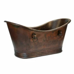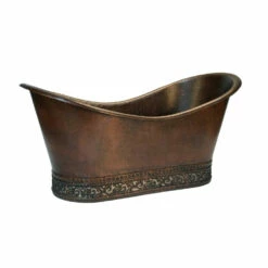 Premier Copper Products 67″ Hammered Copper Double Slipper Bathtub With Scroll Base And Nickel Inlay