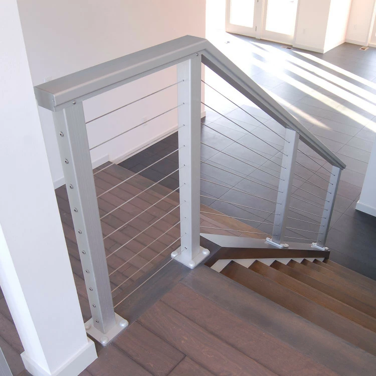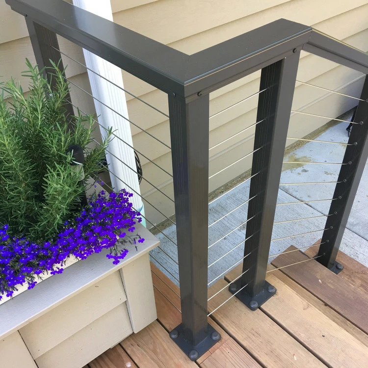 The RailFX Corner Post allows for the cable to run through the post at a 90-degree turn and does not require double-posting. The End Post is used at the end of a rail section, such as next to a house or at the top of the stairs to connect the horizontal rail to the stair rail. The Intermediate Post is used on level surfaces with no cable angle changes and allows the cable to run straight through.