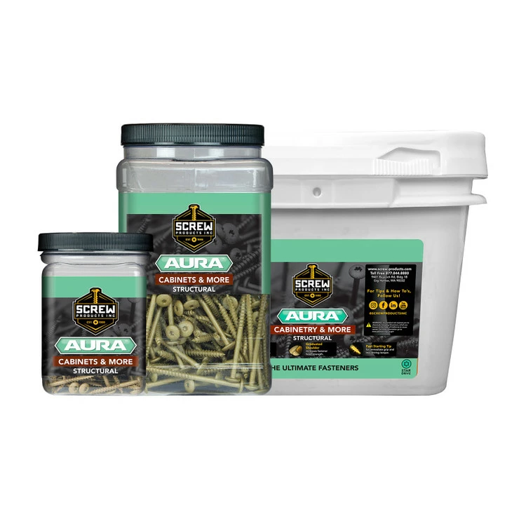 The AURA #10 Wood Screw for Cabinetry features a large diameter mushroom head to increase holding power with a graduated shoulder from head to shank to ensure maximum strength for the screw head. The #10 head size is designed to fit most wood joinery tools and is Kreg Jig compatible. The T-20 star drive have an extra deep recess and reduces camout and end load. With the Fast Start Tip, the threads are threaded all the way to the tip for quick and easy installation. The inset thread cut drastically reduces the splitting effect and minimizes the driving torque needed to engage the wood. Commonly used for cabinetry and furniture, these screws can be used for indoor and outdoor general projects.