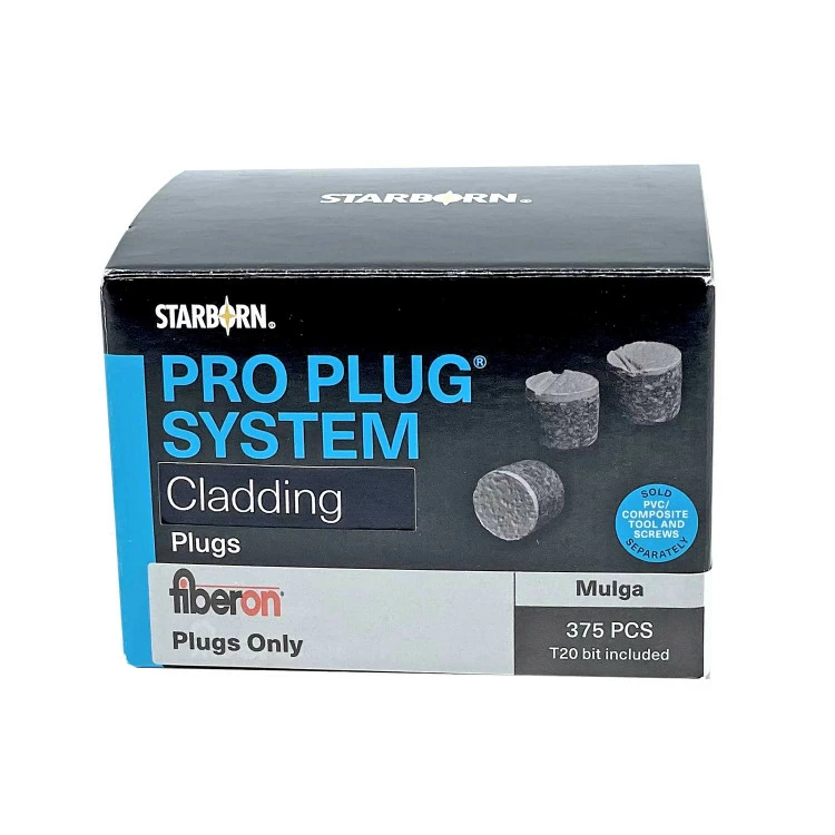 The Pro Plugs for Fiberon Cladding – 375 Count only is a superior and easy-to-install plug fastening system for Fiberon Wildwood Cladding. When used in combination with epoxy coated or stainless steel fasteners, it gives builders the ability to choose the right screw for a wide variety of applications. Pre-drilling a pilot hole prior to screw & plug installation is recommended especially on end fasteners to prevent stress cracking.