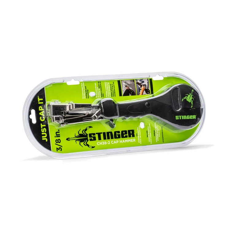 The STINGER CH38-2 Cap Hammer is the economical, non-pneumatic alternative to stapling. The CH38-2 is ideal for installing housewrap, underlayment, and rolled insulation in a fraction of the time it would take when using traditional staples. This plastic cap stapler is designed to be used with only one hand, leaving the other hand free to adjust material as needed.