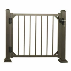The TimberTech Impression Rail Express Adjustable Gate Kit is 36″ H x 48″ W and adjustable for up to 50″ openings. It features the same look and feel as the Impression Rail Express aluminum rail panels while providing both security and safety for children or pets. Just like the rest of the Impression Rail Express products, this gate is low-maintenance and weather-resistant.