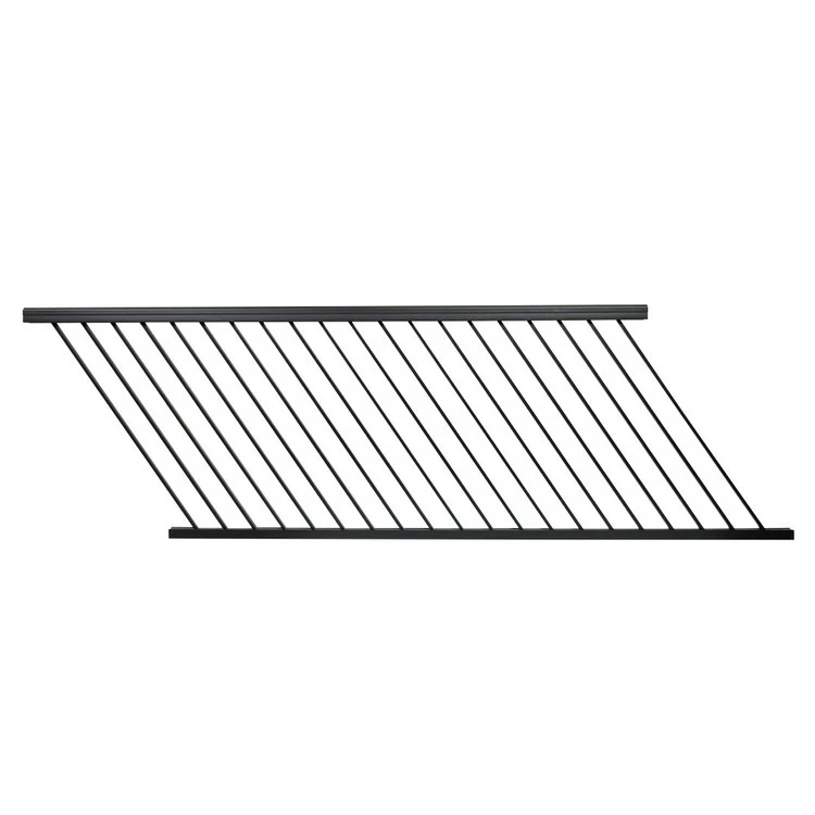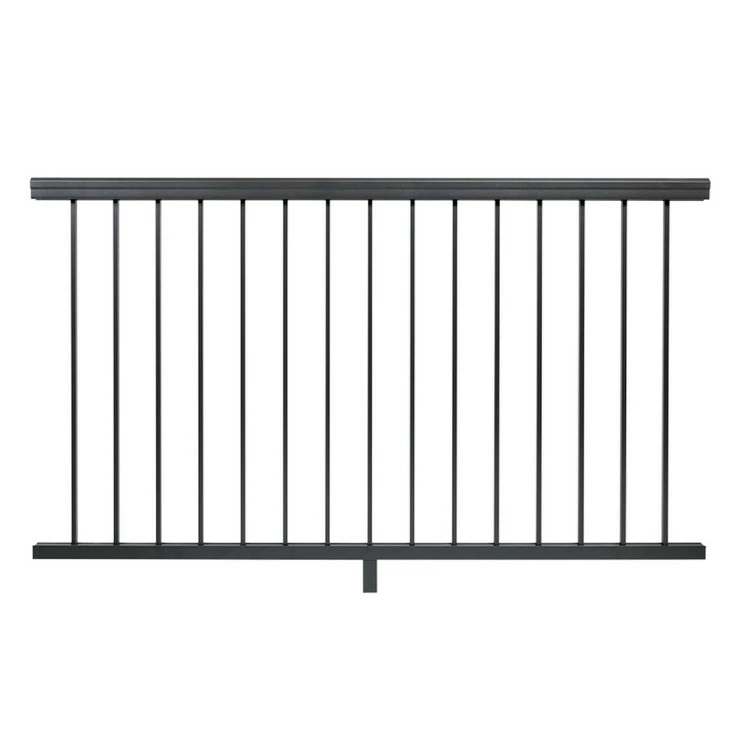 The TimberTech Impression Rail Express Universal Rail Panel Kit – 42″ has a wrought iron-inspired appearance that pairs well with a variety of outdoor design schemes. This kit creates a 42″ final rail height and consists of a pre-assembled aluminum rail panel, a bottom rail, foot block(s), brackets, and hardware; the posts and top rail are sold separately. The panel features pre-drilled, easy-to-align, rattle-free aluminum balusters that provide a sleek profile while remaining secure, durable, and strong. Available in two lengths (6′ & 8′) and three classic colors (Black, Dark Bronze, White) for both Level & Stair applications.